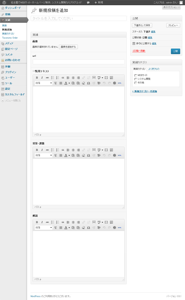 通常業務の傍ら制作を行うので、最低限の情報ボリュームに抑え、随時、コンテンツを増やしていく運用を目指しての構築を行いました。