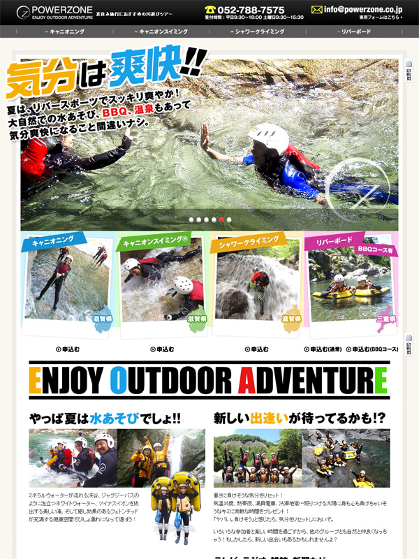 名古屋市東区にある、アウトドアスポーツの運営企画会社のパワーゾーン様のランディングページを制作。